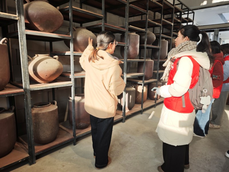 港口镇龙窑有千年历史,规模宏大,不仅成为安徽省省级非物质文化遗产,还被认证为“世界上最长的活态柴烧龙窑”。走进宁国市千年龙窑陶业实践基地,调研队员认真研读了介绍栏上“揉泥搓条盘筑”的成型法技艺与起底、起身、捶打、色泥雕花、施釉、装窑、烧窑、开窑的制作流程。讲解人员带领大家前往龙窟顶部,104.11米的窑身一览无余。从窑床走至窑尾,可见每隔数十厘米有左右对称的洞口。参观龙窑博物馆,展品种类丰富,如日用性质的杯碗花瓶、展览与珍藏性质的济公像、玉玺和雕塑。馆内文创区产品多元,物美价廉,促进了经济效益与社会效益的统一。零距离看工匠师傅捶打半成型晶,观摩出窑产品,深化了学子们对非遗文化的认识。
