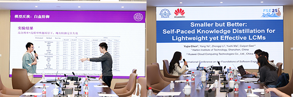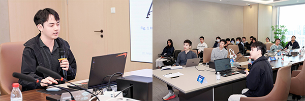 在AI国际顶级会议论文分享环节,邀请了来自多所院校的5位讲者进行了顶会论文分享汇报,现场讨论氛围热烈:清华大学深圳国际研究生院余泓垚分享CCF A类会议ACM MM 2025论文《ICAS: Detecting Training Data from Autoregressive Image Generative Models》,香港浸会大学杨星星分享CCF A类会议NeurIPS2025论文《Exploring Metameric Dilemma for Hyperspectral Image Reconstruction》,哈尔滨工业大学(深圳)王思杰分享CCF A类会议AAAI 2026论文《PipeDiT: Accelerating Diffusion Transformers in Video Generation with Task Pipelining and Model Decoupling》,香港中文大学李树青分享CCF A类会议ICSE 2026论文《3D Software Synthesis Driven by Constraint-Expressive Intermediate Representation》,哈尔滨工业大学(深圳)陈雨佳分享CCF A类会议 FSE 2025论文《Smaller but Better: Self-Paced Knowledge Distillation for Lightweight yet Effective LCMs》。