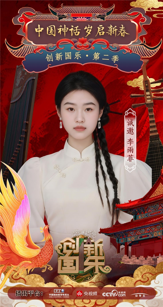 为持续推动中华优秀传统文化的创造性转化与创新性发展,打造具有时代气息的国乐精品,创新国乐第二季“中国神话 岁启新春”大型原创国乐盛典2026年2月8日在北京首钢园隆重启幕!在此,我们特别向学员李雨菲发出正式演出邀请,期待她以更加成熟的技艺与表现力,与我们共同演绎华夏神话的壮丽诗篇。