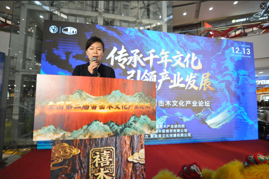 论坛现场,主办方代表薛艳薇女士致辞,详细介绍了研究院在雷击木全流程标准体系建设、科研技术攻关等方面的成果。雷击木承载着中华传统文化的深厚底蕴,蕴含着人与自然和谐共生的古老智慧,是兼具文化价值、收藏价值与实用价值的珍贵资源。近年来,随着传统文化复兴浪潮的兴起,雷击木产业迎来了前所未有的发展机遇,但也面临着标准缺失、乱象丛生、创新不足等现实挑战。正是在这样的背景下,山西雷击木文化产业研究院应运而生,我们始终坚守“科学赋能、规范引领、传承创新”的初心,致力于通过标准化检测、流程化管控、科学化研发,推动雷击木产业从粗放发展迈向高质量发展新阶段。