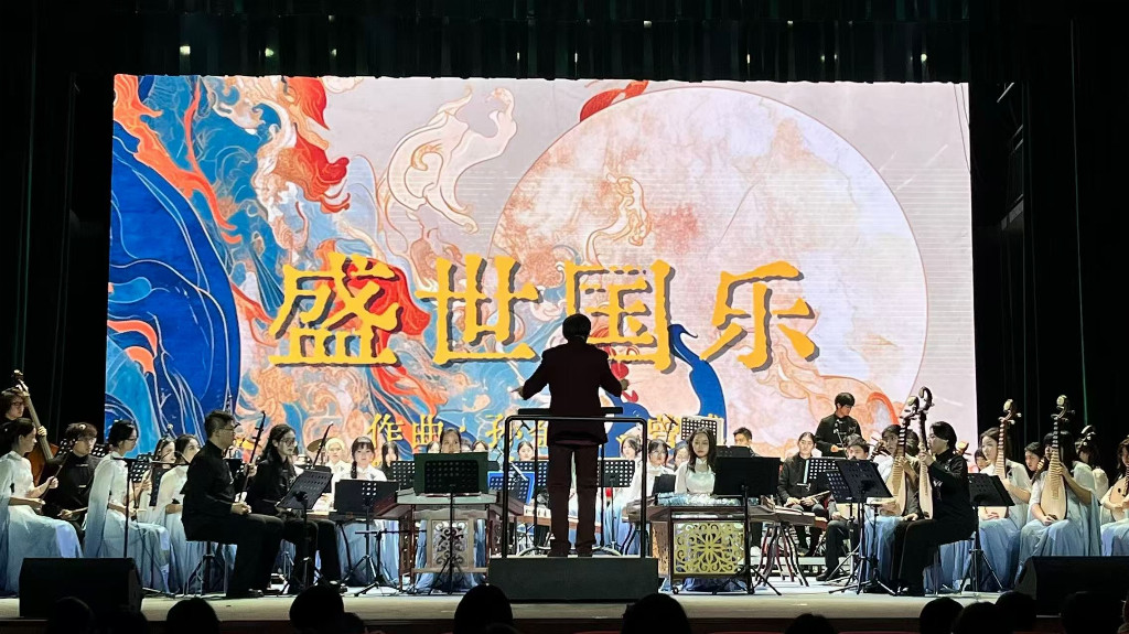 短暂的休憩后,音乐会进入下半篇章“既望·启新程”。如果说上半场是春日将至的悠长序曲,那么下半场,便是这期盼落地生根、舒枝展叶的华彩乐章。民乐合奏《红色娘子军》率先打破沉寂,铿锵弦音与激昂鼓点穿越时空,重现革命先辈的热血征程与铮铮铁骨,每一段曲调都藏着不屈力量,每一组音符都散发信仰光芒。乐声未歇,《盛世国乐》以恢弘气魄接续初心,丝竹齐鸣颂国泰民安,既映照着先辈理想之光,更展现出如今山河无恙、繁花似锦的盛世图景。
