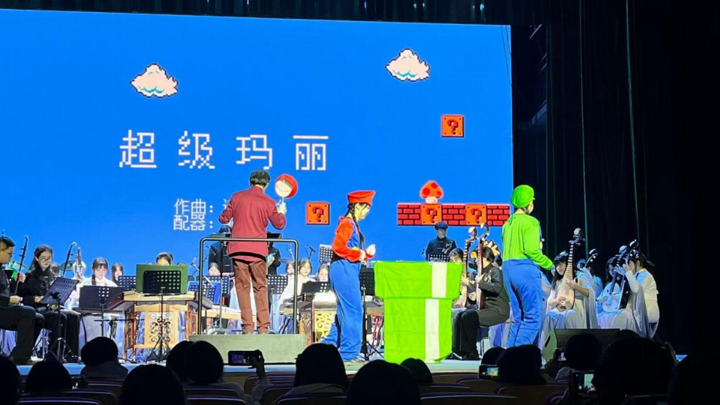 音乐会的惊喜并未止步于压轴曲目。安可曲《超级玛丽》以充满童趣的改编带来意外之喜,民乐丝竹与童年游戏旋律碰撞,熟悉的跳跃节奏、惊喜彩蛋以全新方式登场。古老乐器奏出像素世界的灵动音符,传统与现代、经典与流行在此刻愉快和解,仿佛在告诉所有听众:穿越风雪之后,我们依然保有那份纯真的快乐与勇气。
