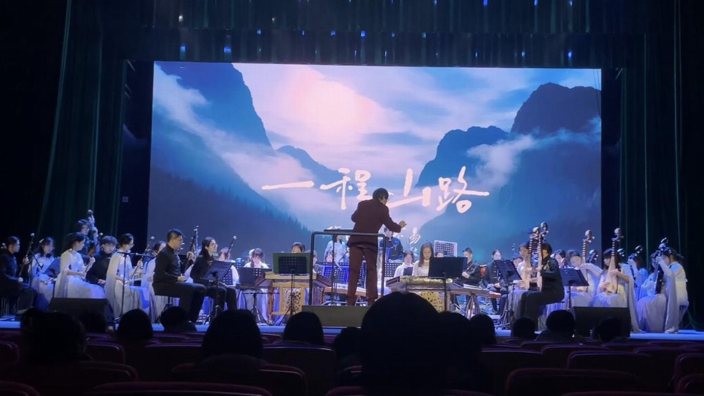 灯光渐柔,《一程山路》的旋律如一幅水墨长卷徐徐铺开。纯器乐部分勾勒出山路的轮廓与空寂,随后男声的加入,仿佛为这画卷点亮了一盏温暖的灯,照亮了跋涉者的身影。“这条山路,或许是寒窗下的孤灯,是风雪中的跋涉,是梦想与现实间最沉默的那段上坡路。”主持人言语间道出了无数奋斗者的心声,为正在备考的学子送上“愿山路尽头是春暖花开,得偿所愿,成功上岸”的诚挚祝福。此刻,台上的弦歌与台下的聆听达成真正的相逢,个人的孤寂在集体共鸣中消融,化为支撑彼此前行的暖流。