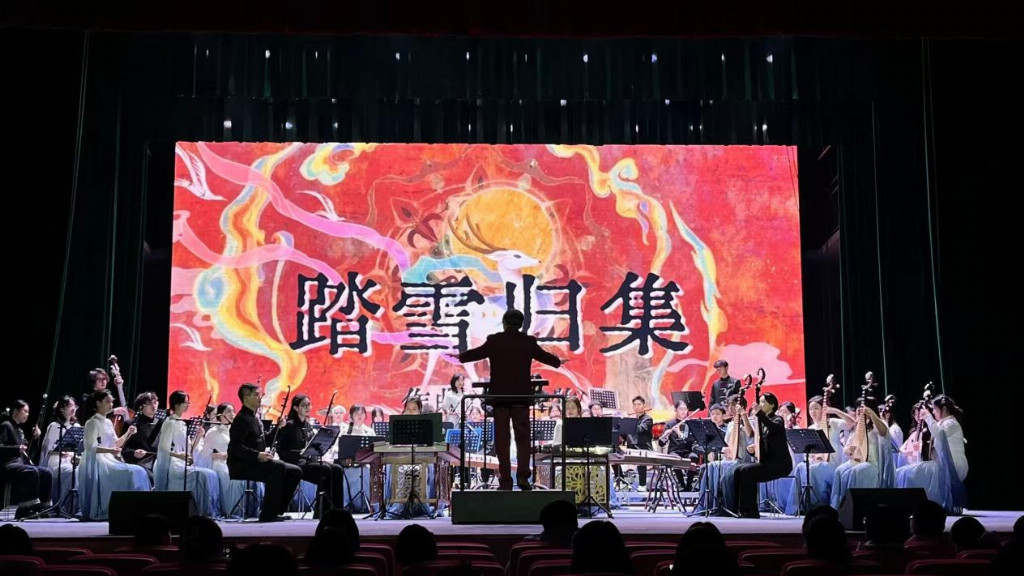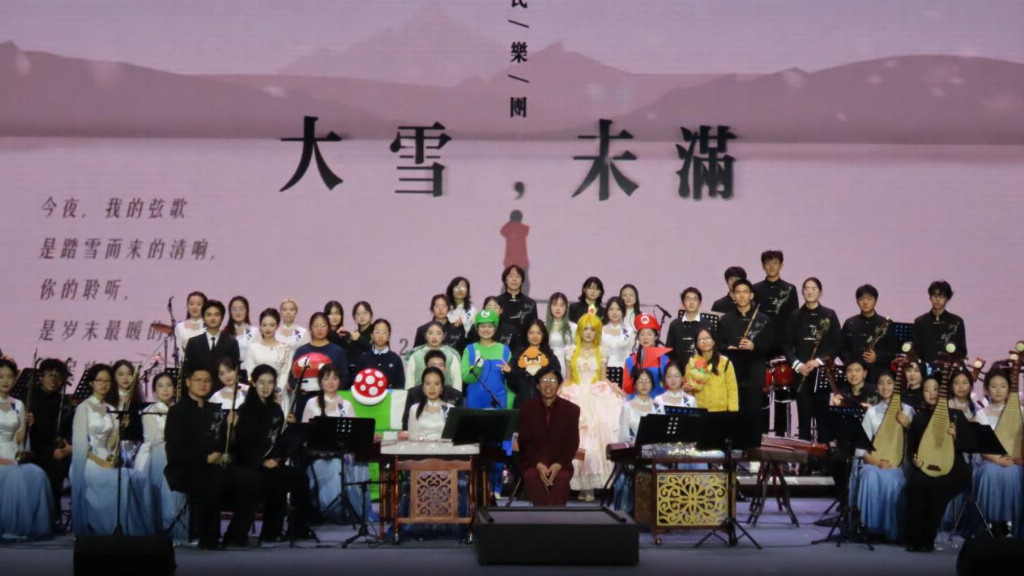 当诗中的大雪落在震颤的丝弦上,未满的便不只是月色,还有音乐与人心之间,那份始终涌动、亟待共鸣的春意。2025年12月6日晚,大雪节气前夕,华中农业大学大学生活动中心剧场内灯火璀璨,心弦民乐团《大雪,未满》主题音乐会如期而至。数百名师生共聚于此,在丝竹管弦的交织中,跟随跨越冰雪与暖流、静默与沸腾的冬夜叙事,共赴一场跨越古今、连接你我的冬夜诗意之约,见证传统民乐与青春创意的碰撞共鸣。这一切,都始于一个“未满”的约定。时值大雪前夕,万物在将雪未雪之间蓄力;而音乐会以音为笔,描摹的正是这份于静谧中暗涌、于将满时停留的东方诗意。从“待春归”到“启新程”,九首曲目如长卷般渐次呈现,既有工笔的细密,亦有写意的留白。