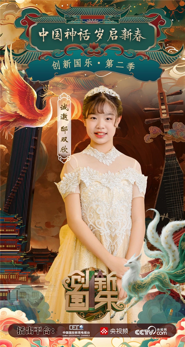 为持续推动中华优秀传统文化的创造性转化与创新性发展,打造具有时代气息的国乐精品,创新国乐第二季“中国神话 岁启新春”大型原创国乐盛典2026年2月8日在北京首钢园隆重启幕!在此,我们特别向学员邸双欣发出正式演出邀请,期待她以更加成熟的技艺与表现力,与我们共同演绎华夏神话的壮丽诗篇。