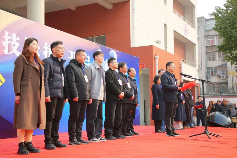 随后,学校党总支书记牛晓伟在致辞中表示,首届科技·社团节是学校落实“五育并举”、推动内涵发展的一个重要里程碑。他回顾了学校师生近年来同心奋进、追求卓越的精神风貌,强调科技·社团节是展示学校活力、激发学生潜能的重要舞台。在热烈的掌声中,牛书记正式宣布:“平顶山市第四十四中学首届科技·社团节——开幕!”并邀请与会领导、嘉宾共同点亮象征智慧与未来的“科技之光”启动球,将现场气氛推向高潮。