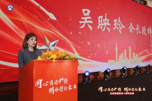 庆典在庄严的国歌声中正式开幕。北京街道商会会长吴映玲在致辞中回顾了商会十年来的工作成果,并对各级领导、会员单位及社会各界长期以来的支持表示感谢。会长指出,商会始终秉持服务宗旨,积极发挥桥梁纽带作用,助力企业成长与区域经济协同发展。随后,商会主管单位北京街领导发表讲话,充分肯定了商会在促进政企沟通、推动产业融合、履行社会责任等方面取得的显著成效,并对商会未来继续深化服务、创新发展提出了期望与要求。