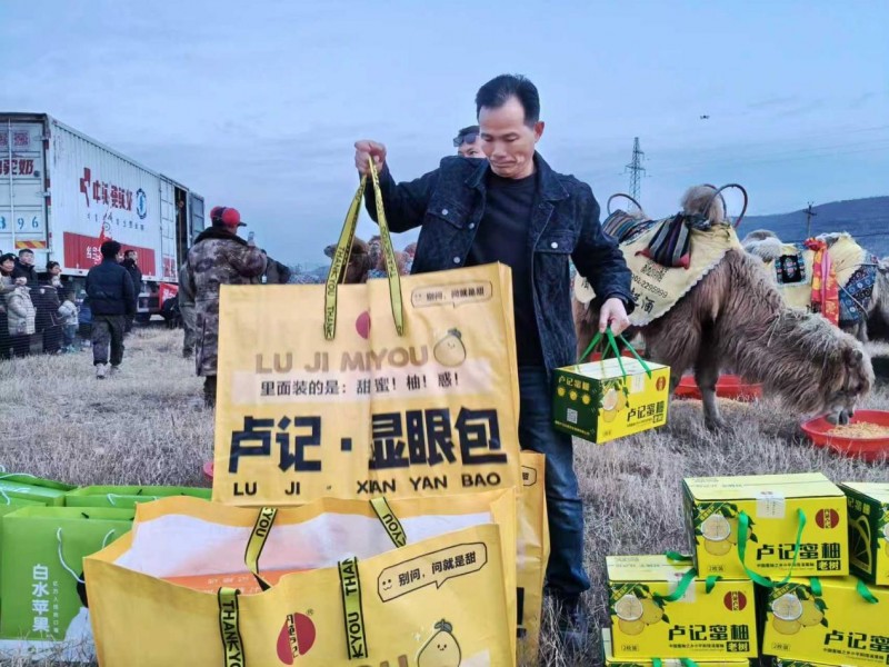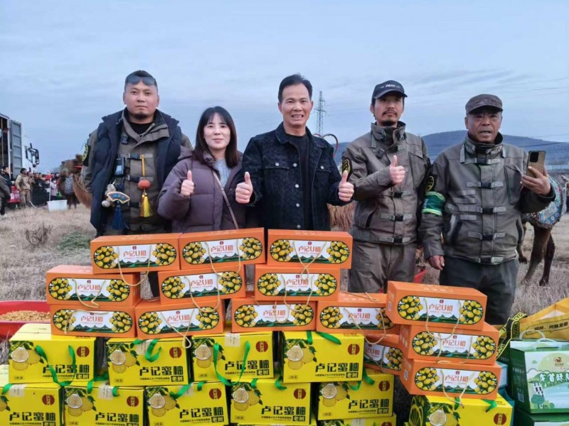 12月20日,在驼队暂驻的营地,卢记蜜柚负责人卢国元亲手将一箱箱金黄饱满的蜜柚交到队员们手中。果实散发出清新馥郁的香气,与队员们历经风沙却依然灿烂的笑容交织在一起,勾勒出一幅融合了传统与现代、边疆与沿海的动人画面。