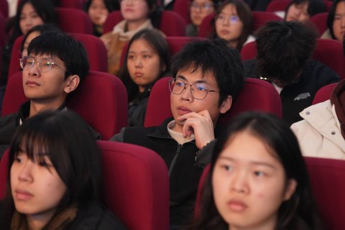 邓稼先“背后的故事”令在场师生无一不动容,他的爱国情怀和无私奉献的精神,也在这一刻如张爱萍将军诗言“许身国威壮河山,功勋泽人间”般荡气回肠,并激励着在场所有学子。