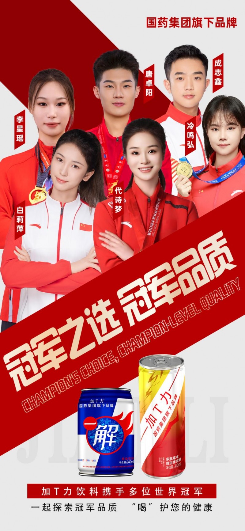 6位冠军在赛场上凭借日复一日的刻苦训练与过硬本领摘得荣誉,这份“夺冠靠实力”的执着坚守,与加T力以国药匠心打造高品质饮品的理念深度契合。