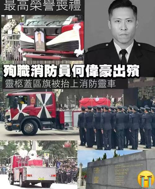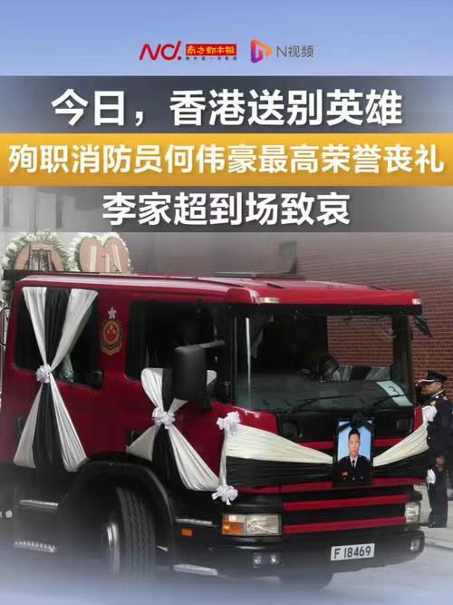 12月19日,香港为殉职消防员何伟豪举行最高荣誉丧礼,行政长官李家超参加,灵车为消防车,灵柩覆盖香港区旗,许多香港市民沿街送英雄,直播视频传遍网络,感动全球无数心。