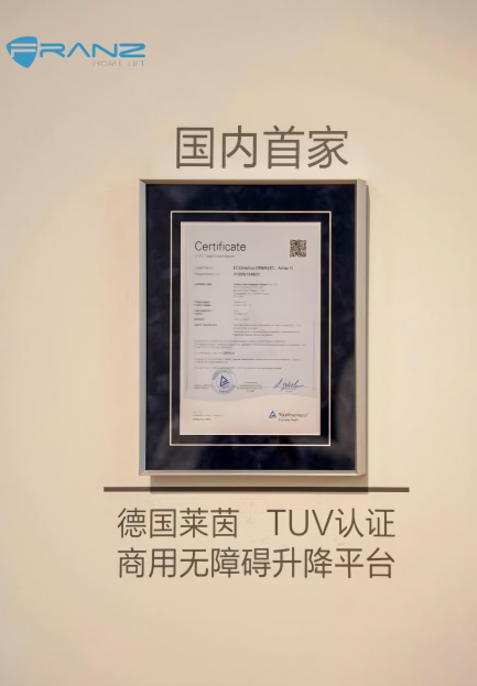 弗朗茨敢于探索并推广此类前沿技术方案,其背后依托的是品牌长期积累的技术研发实力与对品质的严格把控。此前,弗朗茨电梯成功获得了国际权威的德国莱茵TÜV认证,其FP-S商用平台梯产品通过了依据欧盟机械指令进行的严格型式试验。这一认证是产品安全性与可靠性达到国际高标准的有力证明,也为弗朗茨在探索如无线缆等创新技术时,提供了坚实的安全与质量基准。同时,弗朗茨作为“国家级高新技术企业”以及荣获“用户优选家用电梯品牌”等荣誉,均印证了其作为家用电梯优质生产商与家用电梯认证厂家所具备的创新基因与市场认可度。