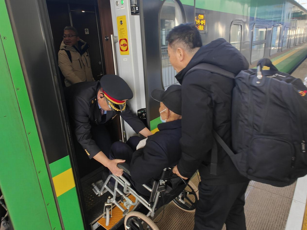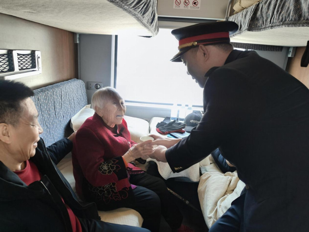 乘车途中米脂车站,列车长杜金明发现两位九旬老人行动不便,随即开启重点旅客专项照料服务。列车员贾昆从主动帮老人协助轮椅上下车、调整铺位,到递送热水、耐心叮嘱乘车注意事项,每一处细节都尽显用心;途中密切关注老人身体状态,主动询问需求、细致解答疑问,用贴心陪伴缓解老人旅途疲惫,让老人感受到亲人般的温暖。
