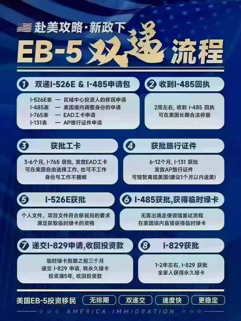 美国EB-5投资移民新政自实施以来,凭借"无排期、双递交、低门槛"等核心优势成为移民市场焦点。据美国移民局2025财年第三季度最新数据显示,新政下美国EB-5申请(I-526E)获批数量同比暴涨4倍,乡村项目作为预留签证配额的核心受益品类,可享受20%专属配额,申请人最快7-8个月即可拿到绿卡,无需经历传统移民类别的漫长等待。当前,美国EB-5预留签证配额尚未告罄,"双递交"政策仍可正常享受,申请人可同时递交I-526E和I-485申请,最快3个月就能获得工卡和回美纸,合法留美工作生活,这一黄金窗口期为有移民规划的家庭提供了难得机遇。