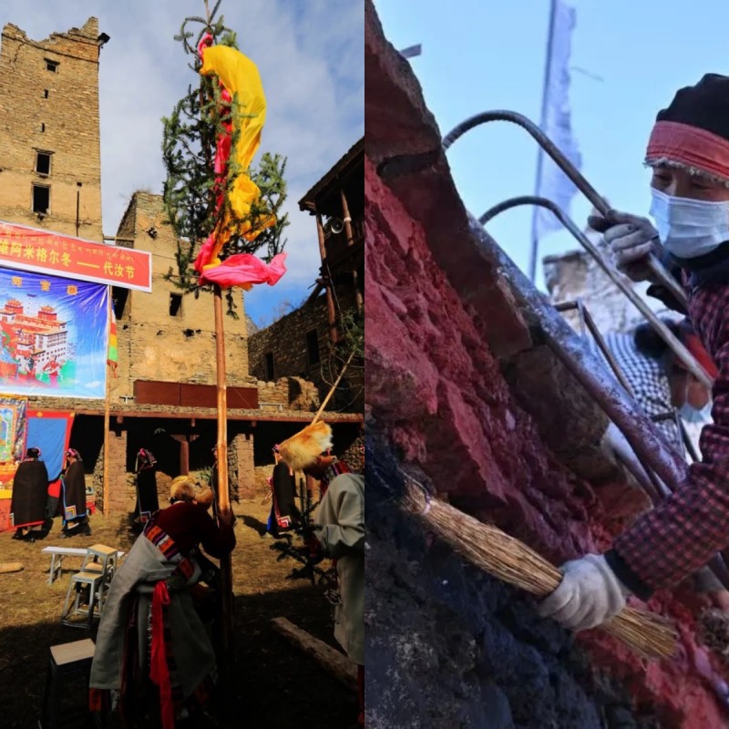 节日的隆重,铭刻于庄严仪式与生活细节之中。节前,村寨悄然换装:家家户户以取自山间的白灰与赭红,将碉房外墙刷出“白-红-黑-白”的鲜明色带,绘上吉祥图案;妇女们以“三揉三醒”的功夫,用青稞面塑出象征英雄、武器、日月星辰和家畜的“甲纳”,寄托最朴实的祈愿。