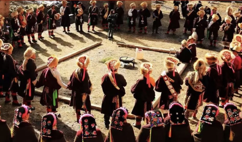节日期间,仪式接连叩击心灵。以星象为准鸣炮开年后,清晨有妇女争抢象征吉祥的“头水”,男子则登顶煨桑,让柏枝清香笼罩山谷。最震撼的莫过于“喇祥”仪式:笔直的杉树被削皮成棱,挂上五色哈达,在全村男子的诵经与《降魔歌》中庄严肃立。夜幕降临,打火仗将气氛推向高潮——白衣代表英雄阿米格尔东,黑衣象征妖魔,双方以火把模拟激战,四溅火星寓意邪祟溃散。随后,人们围篝火跳起锅庄,步伐从沉缓渐至欢快,歌声响彻夜空。