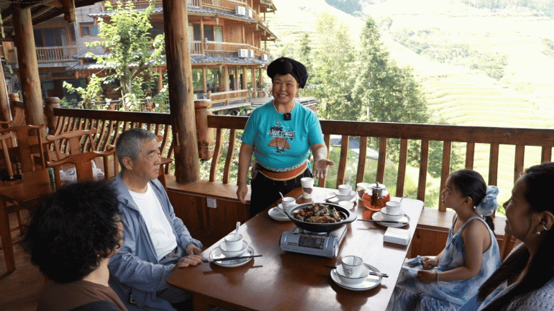 通过成立劳务合作社,龙胜还大力实施“梯田务工赚薪金”计划,开展旅游服务培训,推动景区企业优先聘用本地群众。目前,全县梯田景区内已有民宿、餐馆等经营主体1000余家,直接提供就业岗位5000余个,实现群众顾家就业两不误。