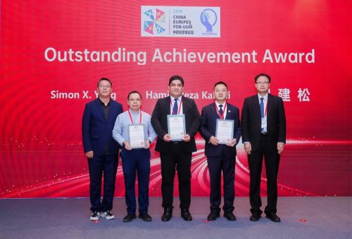 会上为温州医科大学附属第五医院(丽水市中心医院)党委书记纪建松教授,欧洲科学院院士、意大利米兰理工大学Hamid Reza Karimi教授,加拿大工程院院士、圭尔夫大学终身教授Simon X. Yang颁发中欧科学家论坛杰出成就奖。