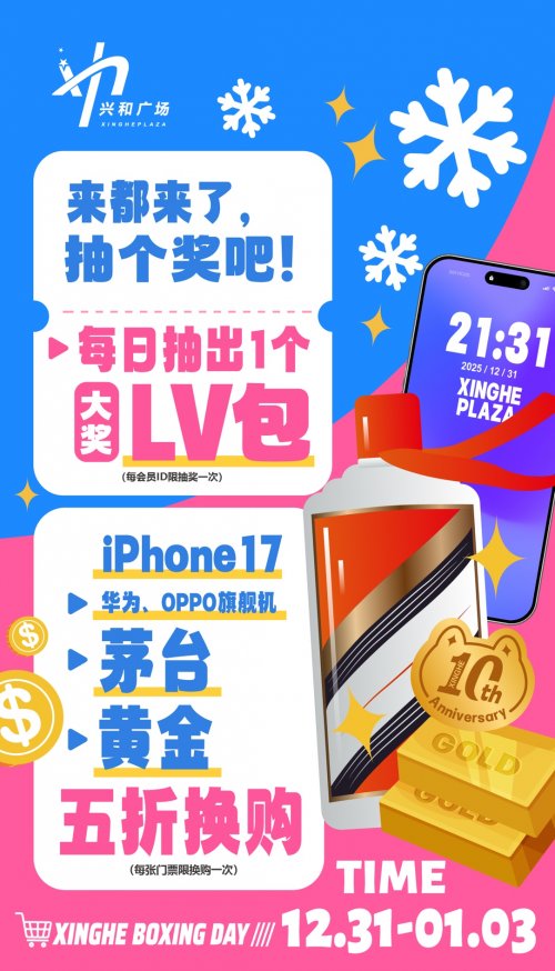 一份邀约,多重礼遇。兴和集团始终致力于为您创造高品质的购物与休闲体验。即刻关注兴和广场官方平台,锁定限量VIP门票,即可一站式畅享跨年五折、乐队LIVE与抽取LV的狂欢乐趣。让我们相约岁末,共启新年华章!