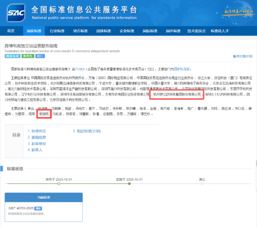 本次更是深度参与《跨境电商独立站运营服务指南》国家标准的制定,结合自身在数万家外贸企业服务中验证的成熟运营模型与创新技术应用,确保了标准的科学性和实用性,推动跨境电商独立站行业正式迈入"标准化、体系化、专业化"的新阶段。