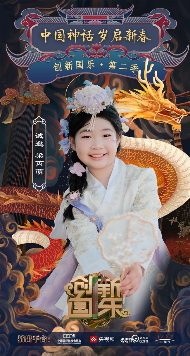 为持续推动中华优秀传统文化的创造性转化与创新性发展,打造具有时代气息的国乐精品,创新国乐第二季“中国神话 岁启新春”大型原创国乐盛典2026年2月8日在北京首钢园隆重启幕!在此,我们特别向学员梁芮萌发出正式演出邀请,期待她以更加成熟的技艺与表现力,与我们共同演绎华夏神话的壮丽诗篇。
