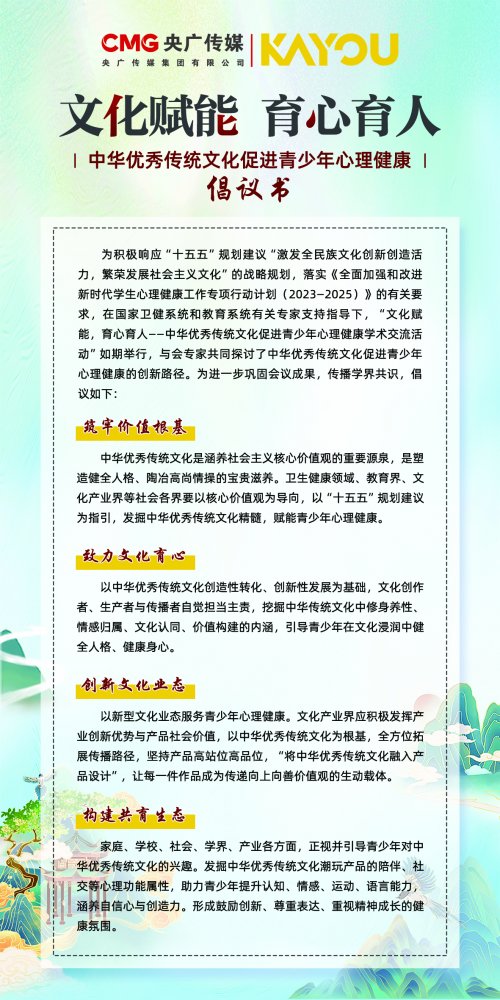 图片说明:《“文化赋能,文化育人”—— 中华优秀文化促进青少年心理健康倡议书》在会上正式发布。