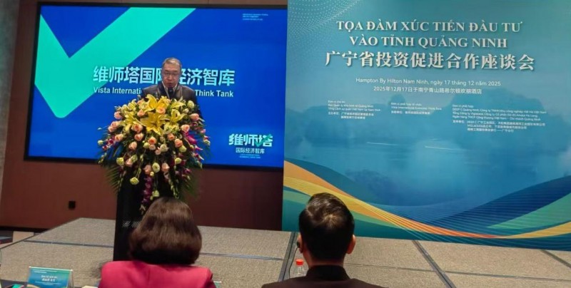 2025年12月17日下午,由越南广宁省经济区管理委员会、越南驻南宁总领事馆联合主办,维师塔国际经济智库(以下简称维师塔智库)作为唯一协办单位的“越南广宁省投资促进合作座谈会”,在广西南宁成功举行。本次活动汇聚中越两国政企学研领域代表,以“精准对接、务实赋能”为核心,搭建起政府支持、智库牵头、高校赋能、企业参与的合作平台,既夯实了中越跨境合作的基础,更凸显出维师塔智库整合跨国资源、推动务实合作的核心纽带作用。