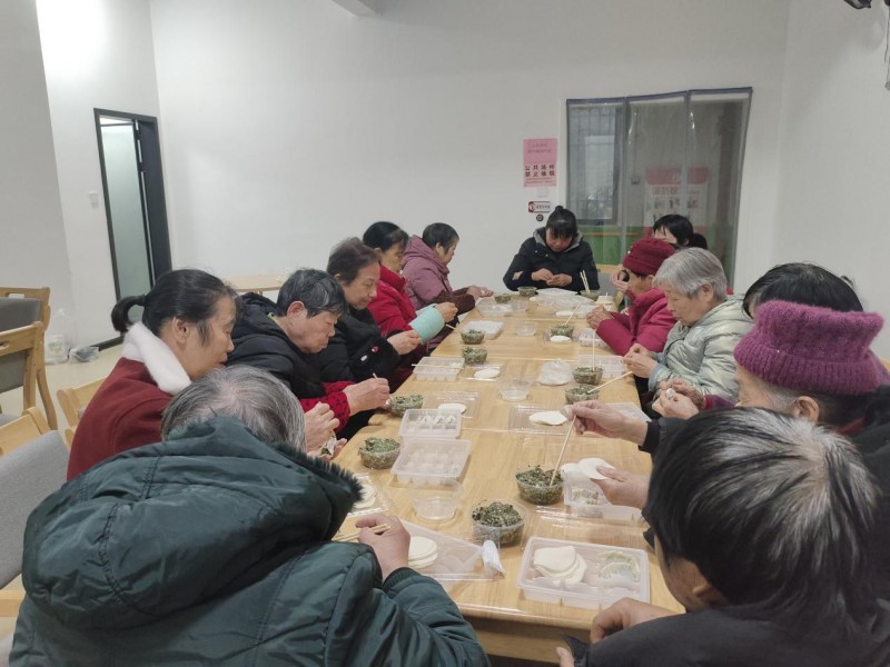 当材料分发完毕,活动室瞬间变成了一个充满活力的手工厨房。72岁的陈奶奶动作娴熟,她先取一小块面团,在手心轻巧搓圆,用那根用了多年的枣木擀面杖,手腕匀速转动,三五下便擀出一张中间厚、边缘薄的完美面皮。“这皮子啊,中间厚点煮的时候不容易破,边上薄了口感才好。”几位老人还自发组成“教学小组”,耐心指导着手法生疏的娭毑。“馅别放太多,不然封不住口。”“捏边的时候要用点劲,你看,这样……”她们的手指或许已不再那么灵巧,有些微微颤抖,但那份专注与传承的热情,让每一个动作都充满了温度。