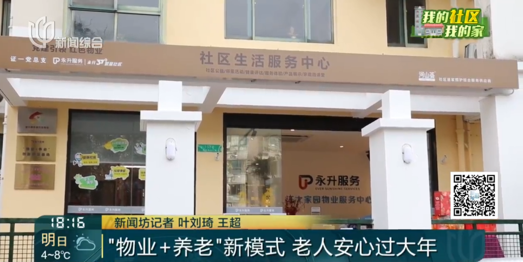 2024年由永升服务携手上海河山荟共同打造的“物业+养老”创新示范基地落户浦东新区浦兴路上海证大家园一、二期,作为“物业+养老”新模式,传统的闲置物业服务中心变身为社区生活服务中心,配备各种居家养老服务,小区居家养老服务设施就近配置,丰富的互动空间满足老年人的日常活动需求,并结合健康公益微 课堂、健康评估、专家义诊、康复指导等便捷服务,延伸到居家养老、护理、陪诊、助浴等多板块养老服务。永升服务依托物业服务,为社区老人定制个性化健康管理档案,用专业知识和暖心关怀为社区老人健康、养老等服务需求保驾护航。