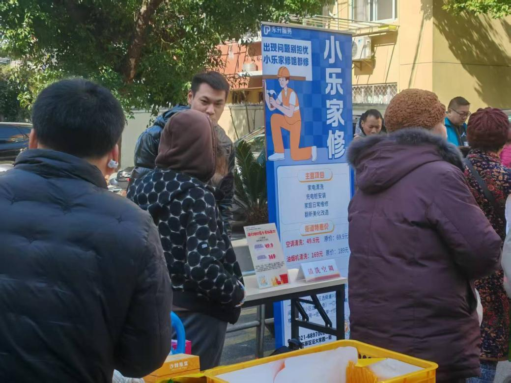 为更好地满足居民更多元化的社区服务需求,项目服务团队以“到家服务”构建起一支兼具专业技能与教学能力的全能工程师、到家服务师队伍,他们不仅能高效解决家修、家电清洗等基础需求,更通过“银发巡回集市”将服务半径从证大家园一、二期延伸至浦兴路街道全域。浦兴路街道联合永升服务通过“银发巡回集市”,将“物业+养老”的服务围墙打开,专业赋能,为街道内的更多小区的老年人解决“家电维修难”、“空调清洗难”等问题,物业工作人员通过线下宣讲,帮助老年人完成永升活app“芯选平台”线上下单,形成服务闭环,并长期与老人保持联系,随时关注老年人其他需求。