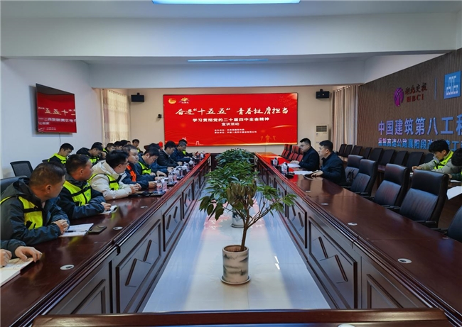12月24日,共青团襄阳市委副书记周清源一行到福银高速项目宣讲党的二十届四中全会精神并开展青年交流活动。共青团襄阳市委青年发展部部长周健,中建八局华中公司党建工作部(企业文化部)主任、团委书记贾江凡,中建八局华中公司基础设施分公司党总支副书记、执行总经理陈刚及项目相关管理人员参加。