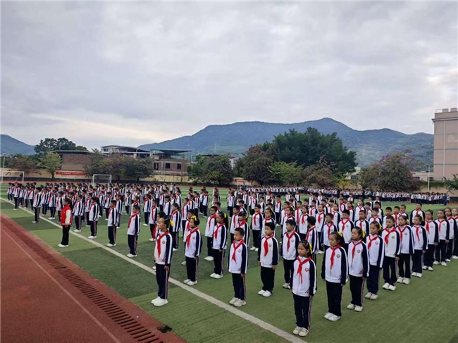 随着陈欣飞校长宣布比赛开始,各班按年级依次登场。领操员哨声一响,同学们身着统一服装,迈着整齐步伐入场,队列创意十足;《七彩阳光》旋律响起,伸臂、弯腰、踢腿,每一个动作都规范有力,精神饱满的姿态赢得阵阵掌声。评委团从动作质量、进退场秩序等维度现场打分,统计组实时核算成绩。