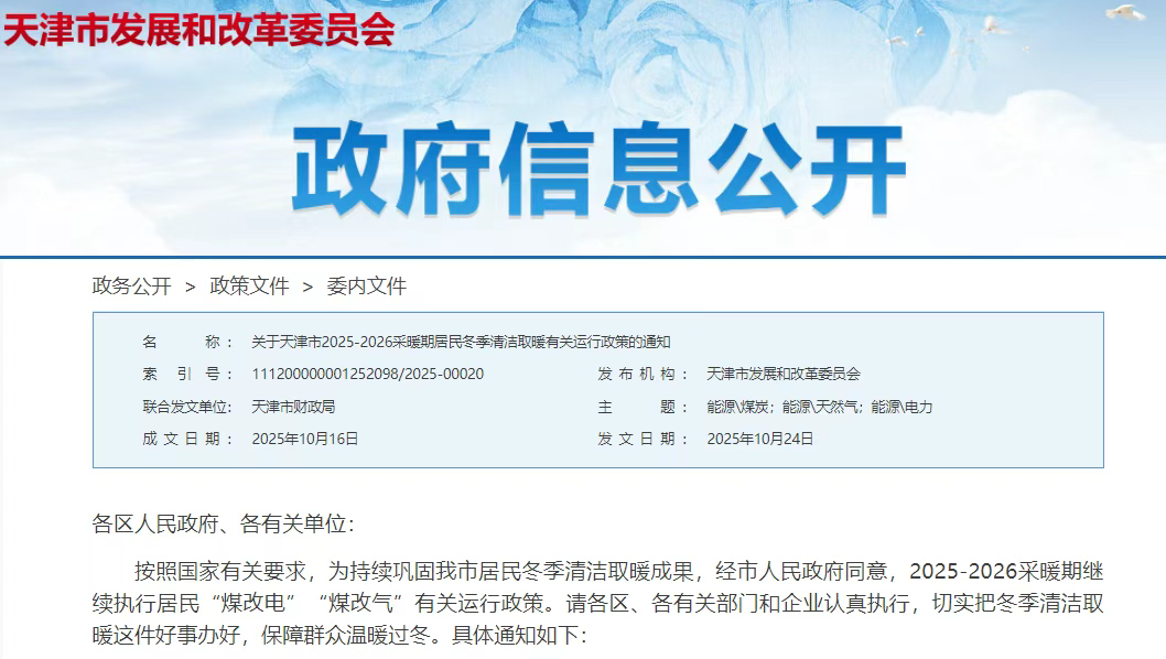北方多地清洁取暖补贴政策集中落地,居民用电成本显著下降。辽宁、天津、山西等地纷纷出台电价优惠,其中天津采用空气源热泵的用户,在享受低谷电价后还可获得额外补贴,实际用电成本低至0.1元/千瓦时。