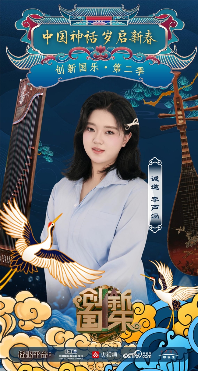 为持续推动中华优秀传统文化的创造性转化与创新性发展,打造具有时代气息的国乐精品,创新国乐第二季“中国神话 岁启新春”大型原创国乐盛典2026年2月8日在北京首钢园隆重启幕!在此,我们特别向学员李芦涵发出正式演出邀请,期待她以更加成熟的技艺与表现力,与我们共同演绎华夏神话的壮丽诗篇。