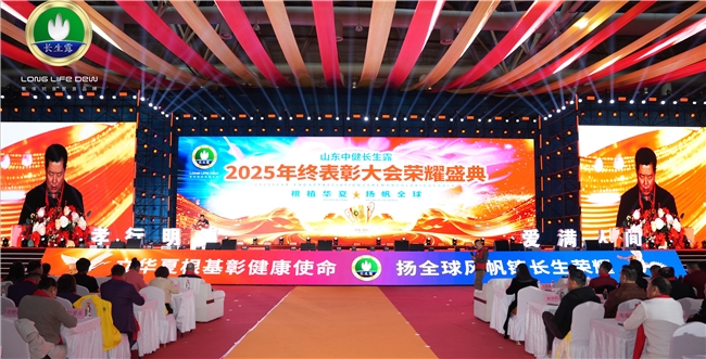 冬韵鎏金,盛事启幕。2025 年 12 月 21 日,山东中健长生露2025 年终表彰大会荣耀盛典在潍坊隆重启幕,以高规格之姿、全球化视野,书写健康产业的时代华章。行业领军人物、政企代表、合作伙伴与企业全体同仁齐聚一堂,共忆奋斗征程,共绘全球蓝图。