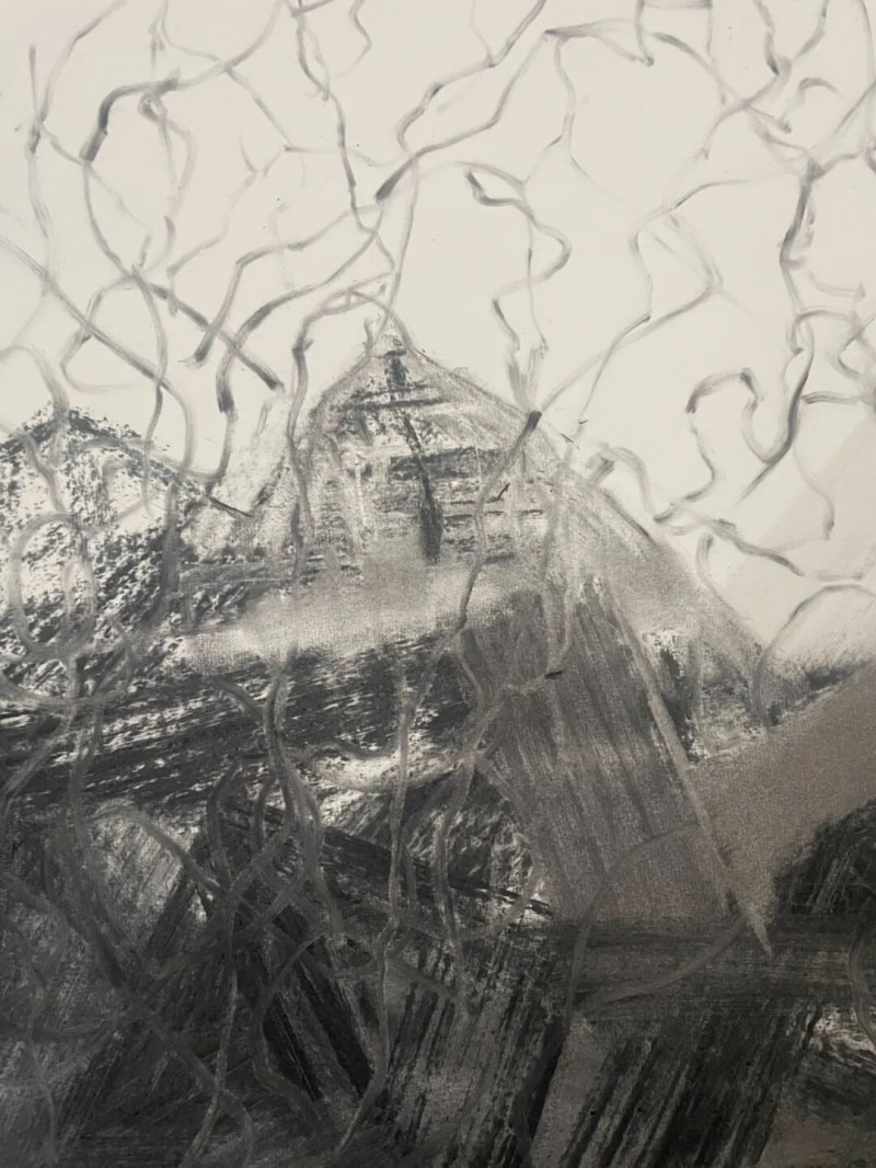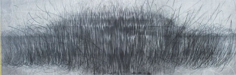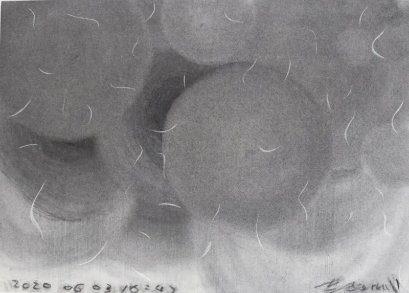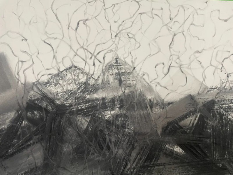 峰辉的纸本作品,并非与其油画一脉相承,其中特质,更倾向于水墨的气韵和节奏。北宋沈括在《梦溪笔谈》中评记董源画笔:“皆宜远观,其用笔甚草草,近视之几不类物象,远观则景物粲然,幽情远思,如睹异境。”峰辉的近作显现出与此相近令人惊异的视觉迹象。他将所绘对象的固有结构彻底打散,又通过对线条的厚度、呼吸、书写及留白来将其重组,逸笔草草,而物情物态便从虚幻中凝聚成形,神完气足。下笔无碍,动静等观,给观者留下很大的想象空间。