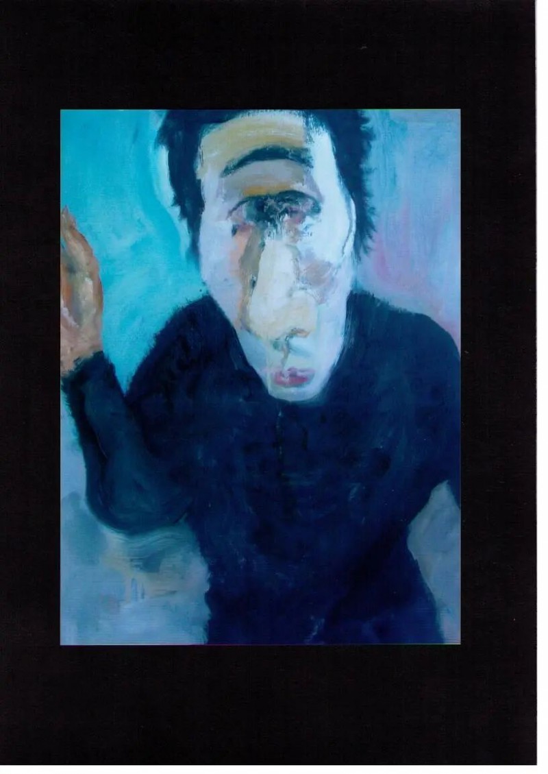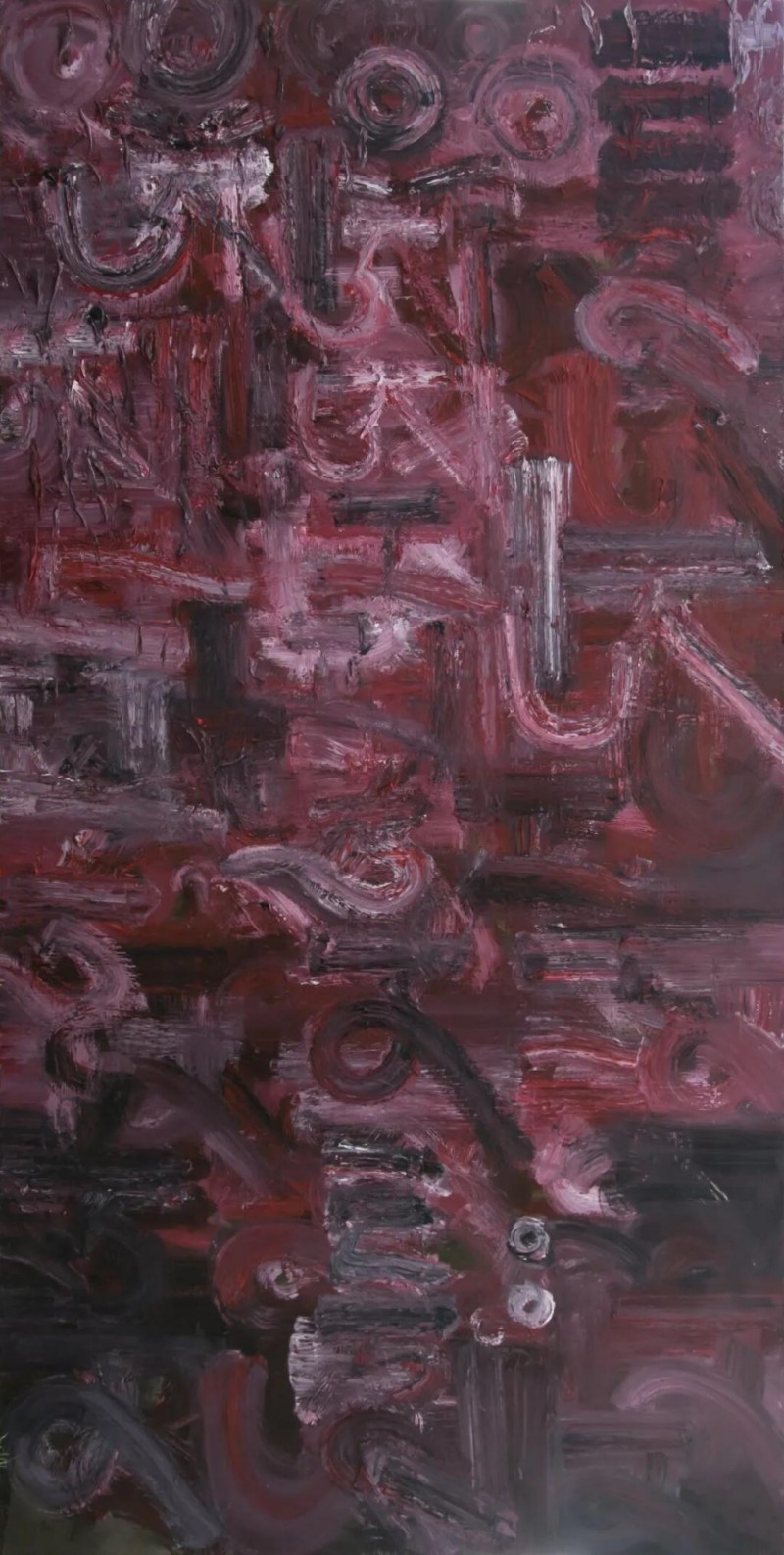 峰辉的油画,特别是以肖像为主题的《你听我说》、《你不高兴我难受》、《你不说话我无言》等作品,往往具有一种异质的陌生化效果,不同维度的两张面孔(你、我)被强置于同一平面中,扭曲的面部、紧闭的双目以及粘连的嘴唇,其怪诞近乎超现实的梦魇状态,从创作者刻意为之的钝重拙朴的笔下流出,带着不可名状的痛苦与焦虑,大笔触的猩红颜料和斑驳的刮痕,以浓烈的象征色彩隐喻鲜血和伤口,进一步强化画面的痛感程度。若止于此,峰辉作品已然能冠之以“表现主义”或“象征主义”的佳作,然再度细察,其画面又有惊人发现,在剧痛的震荡之下,人物的整体情绪却始终如一地呈现出静默的安详状态。这种巨大反差的跳跃观感,顿时又将观者带入了质疑和追问的探寻中——因何疼痛,是“可见”之生存境遇的压力抑或人际交往的淡漠?因何安详,是“不可见”之自我无视的麻木抑或内心坚强的从容?答案因人而异,至此,峰辉通过画面和观者之间搭建了某种联系,以整体的布局和细节的控制,将波德莱尔所强调的“艺术的想象力”和克莱贝尔提及的“有意味的形式”,一一展开。