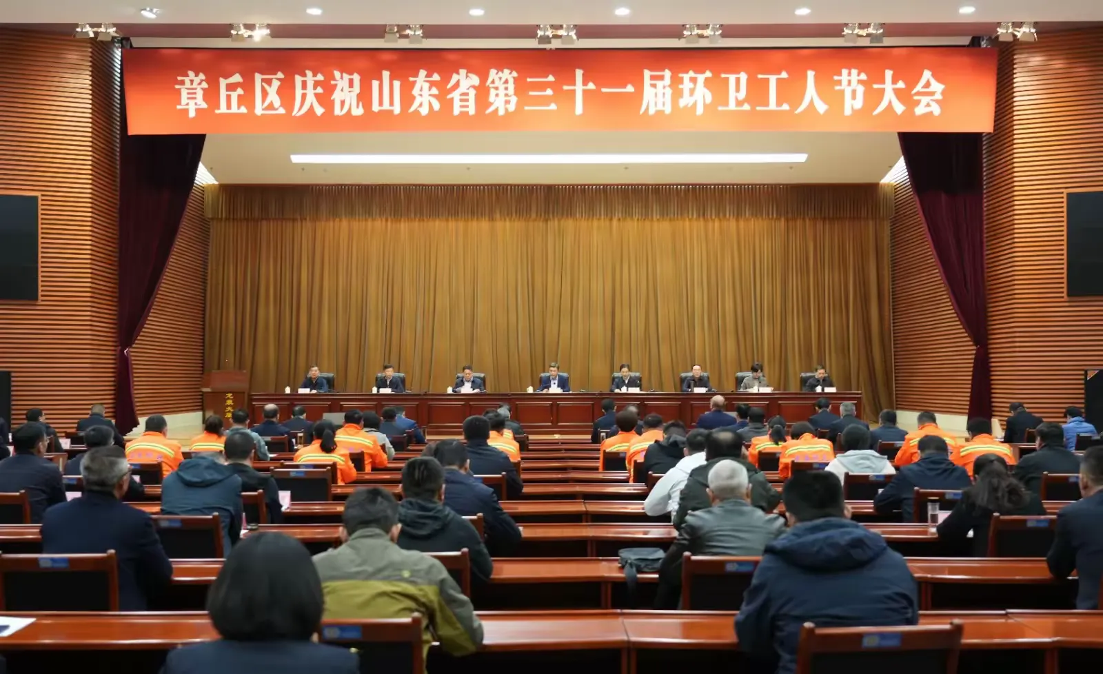省住建厅、市城管局及章丘区领导出席全区庆祝山东省第三十一届环卫工人节大会