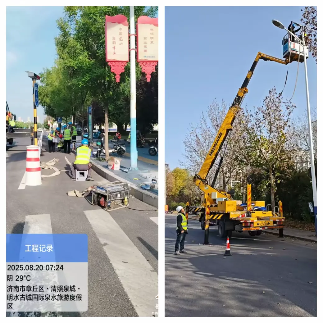 (三)解民忧、暖人心,高效解决群众身边照明问题。实施清照大街北延路灯提升工程,仅用4天时间,高效完成83盏路灯太阳能板、储能设备、灯头更换和底座、灯杆更新加固,及时满足周边市民夜间出行需求。实施双泉西路明水古城停车场段路灯增设工程,新增15基高照度节能智慧路灯,为市民游客提供暖心照明服务。精心设计,于春节期间在城区悬挂灯笼2100个、灯串6000条、树灯420组;规范安装,于国庆节期间在主要干道悬挂国旗近1200面,营造了喜庆祥和的节日氛围。