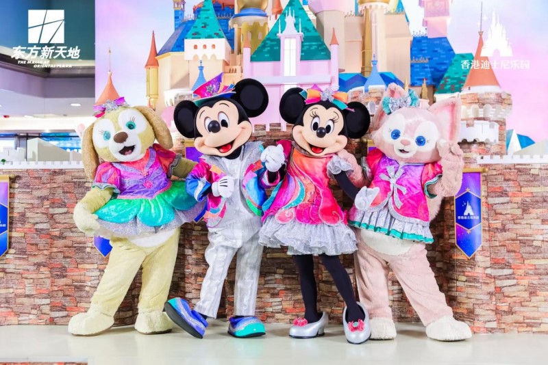 米奇、米妮、可琦安、玲娜贝儿四位迪士尼朋友齐聚一堂,他们身着全新香港迪士尼20周年限定服饰,活力满满,将欢乐萌趣送给在场的每一位顾客。