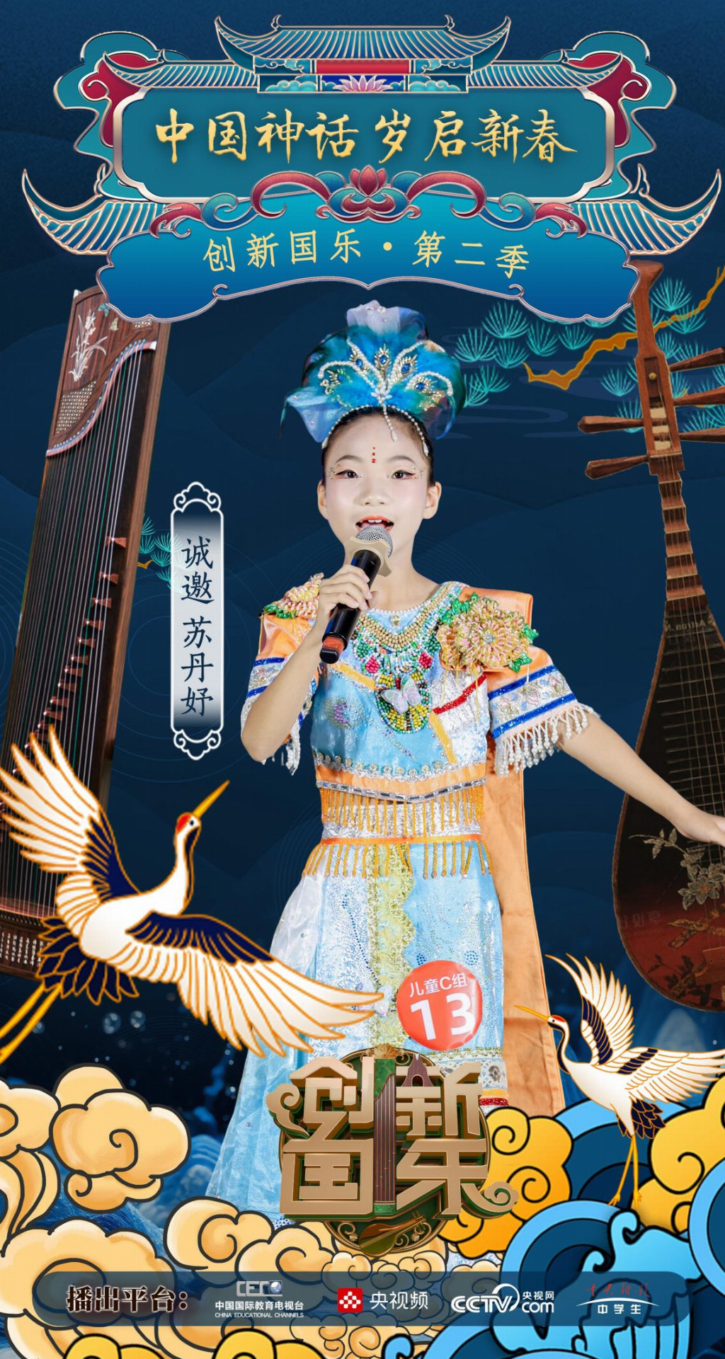 为持续推动中华优秀传统文化的创造性转化与创新性发展,打造具有时代气息的国乐精品,创新国乐第二季“中国神话 岁启新春”大型原创国乐盛典2026年2月8日在北京首钢园隆重启幕!在此,我们特别向学员苏丹妤发出正式演出邀请,期待她以更加成熟的技艺与表现力,与我们共同演绎华夏神话的壮丽诗篇。