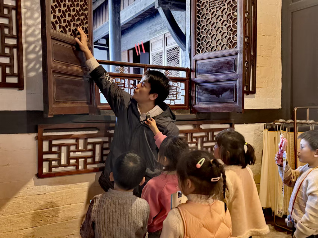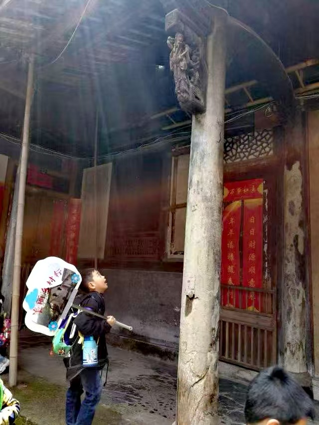 3.抚摸雕花,惊叹工匠匠心:门楣、梁柱、牛腿上的木雕、石雕,虽经岁月剥蚀,仍可见精细入微的工艺。栩栩如生的人物、花卉、瑞兽图案,让孩子们连连惊叹,直观感受到传统建筑装饰的艺术魅力。