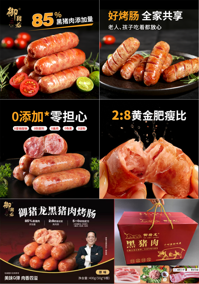 秉持 “绿水青山就是金山银山” 的理念,御猪龙坚守生态养殖根基。品牌坚持 “以草代粮” 的养殖模式,精选养殖 300 天以上的中华黑猪,其 “三同、四强、五好” 的优良特性,从源头保障了肉质的纯净与营养价值。加工环节由拥有 40 年经验的台式烤肠师傅亲自把关,采用低温发酵与高温蒸煮工艺,在剔除全部筋膜的基础上,实现 85% 高含肉率与 2:8 黄金肥瘦比,并严格坚守 “0 亚硝酸钠、0 防腐剂、0 禽肉、0 色素、0 淀粉” 的绿色标准。通过线上直播、线下商超、餐饮渠道等多维度布局,御猪龙构建起 “种养加销” 全链条闭环,让生态健康食品直达百姓餐桌。