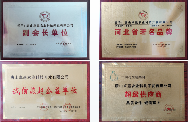 数年如一日对品控的坚守,最终换来了品牌的认可。如今,卓赢农业科技已拥有“鑫天罡”“滦生果儿”“鲁生源”“滦味香”四个品牌,其中“鲁生源”被评为“河北省著名品牌”,“鑫天罡”被评为“河北省优秀品牌”。“这些品牌不是靠广告砸出来的,是靠每一粒花生的品质积累出来的。”宋占江感慨道。