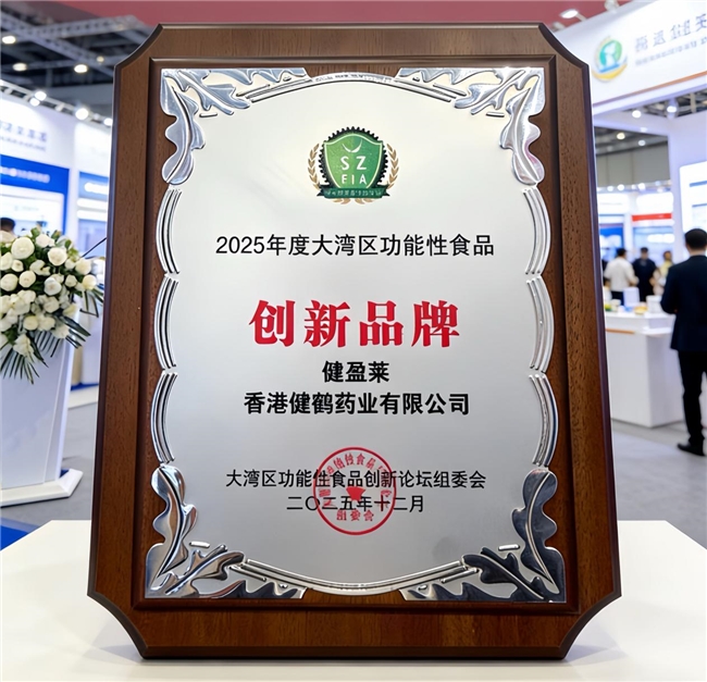 近年来,随着健康素养的不断提升,人们对健康美好生活的向往日益增强,功能性食品市场的容量急剧扩大。2025年12月16-18日,深圳健康原料、食品配料展在深圳国际会展中心举行。健鹤药业旗下核心品牌——健盈莱®GenforLife,凭借在技术研发领域的深厚底蕴与产品创新方面的卓越表现,助力公司荣膺“2025年大湾区功能性食品创新品牌奖”。
