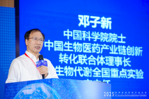 在随后的主旨报告环节,中国科学院院士、中国生物医药产业链创新转化联合体理事长邓子新以《创新引领,破局而立 构建 “十五五”生物医药产业发展新格局》为题,深入剖析当前生物医药产业发展面临的机遇与挑战,提出要以创新为引领,突破产业发展瓶颈,构建具有核心竞争力的产业生态。
