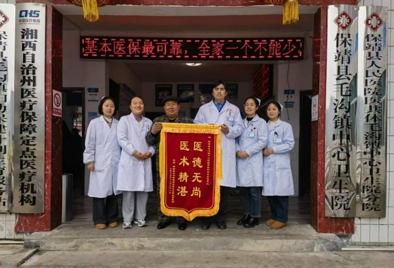 12月29日,保靖县毛沟镇中心卫生院的医护团队收到一面印着“医德无尚 医术精湛”的鲜红锦旗,患者雷某某紧紧握着医护人员的手,连连表达感激之情,这温馨的一幕成为卫生院里最动人的风景,也为寒冷的冬日增添了一股浓浓暖意。