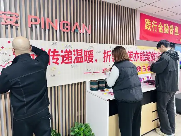 活动伊始,平安产险海盐支公司负责人邀请工作人员与客户共同签署“星光承诺横幅”,并贴上亲手折叠的星星,以“连星成海”的寓意传递公益决心。现场同步开展金融安全知识宣教,通过案例解析、互动问答等形式,帮助参与者提升防范金融诈骗的意识与能力。为深化公益联结,活动特别推出“益起护”保障礼盒,内含公益邀请函、可播种的“希望种子纸”及手写答谢卡,将金融宣教与公益关怀以有温度的形式传递给社区。