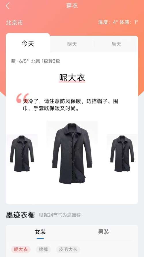 想要确定墨迹天气准吗,打开APP亲自体验便能找到答案。当前,墨迹天气预报APP除了有气温曲线外,还有“天冷了,请注意防风保暖,巧搭帽子、围巾、手套”等可执行建议,其AI生活引擎通过学习用户位置、历史行为与实时气象,动态生成个性化提示,将专业数据转化为生活语言。