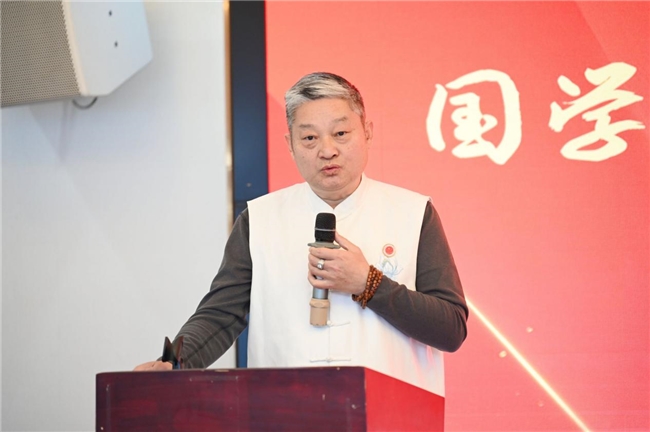 国家文化和旅游部机关党委原常务副书记、东方文化艺术院院长刘长权在演讲中紧扣“守正创新践行”六字要义,强调国学传承既要坚守文化根脉之“正”,又要开拓时代表达之“新”,更重在融入生活之“践行”。他指出,国学不仅是思想体系,更是生活美学与精神滋养的源泉,必须“落地于生活、彰显于审美、服务于人民”。他高度肯定礼乐、书画、戏曲等非遗的当代价值——书法是“心正笔正”的修身之道,古琴是“中和雅正”的心灵对话,皆为守正之载体;而通过打造社区、校园、博物馆及文旅景区中的“沉浸式国学空间”,推动青少年在琴棋书画、节令礼仪中涵养美德,则是创新之路径;鼓励文艺创作从《诗经》《楚辞》到唐宋诗词汲取灵感,推出民族气派与时代气息兼备的精品,正是践行之体现。他总结道:“唯有守正不移、创新不止、践行不息,方能真正把美的种子播进人民心田。”
